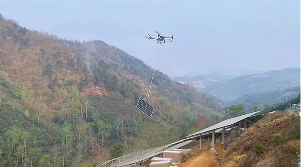 “近距離的無人機(jī)運(yùn)輸操作方便、飛行速度快、不受地形地勢影響,避免了人工運(yùn)輸風(fēng)險(xiǎn),解決了陡坡材料轉(zhuǎn)運(yùn)難題,大大提高了運(yùn)輸效率……”現(xiàn)場負(fù)責(zé)人說道。據(jù)了解,無人機(jī)在多塊電池循環(huán)使用的情況下可以實(shí)現(xiàn)連續(xù)作業(yè),一臺一天平均能夠運(yùn)輸360至400塊光伏板,相比騾馬運(yùn)輸而言,有效減少人力物力財(cái)力的投入,加快工程施工進(jìn)度,確保工程高效、優(yōu)質(zhì)履約。下一步,項(xiàng)目部將在無人機(jī)運(yùn)輸物資安全可行的基礎(chǔ)上總結(jié)、推廣成功經(jīng)驗(yàn),爭取提高整個(gè)施工區(qū)域建設(shè)的質(zhì)量與效率。