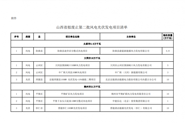 附件:山西省擬廢止第二批風電光伏發(fā)電項目清單.pdf