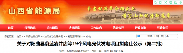 為加快推進新能源“十四五”規(guī)劃建設進度,實現我省新能源產業(yè)高質量發(fā)展,我局組織各市能源局對2021年及之前項目單位投資不積極、確定無法建設的風電光伏發(fā)電項目進行了梳理。相關地市上報擬廢止項目清單,經我局匯總,擬將陽曲縣蔚藍凌井店等19個總規(guī)模100.8萬千瓦風電光伏發(fā)電項目予以廢止,現予公示。相關企業(yè)如有異議,請向相關市能源局提出書面意見,并在公示期(5個工作日)內,由市能源局上報省能源局。