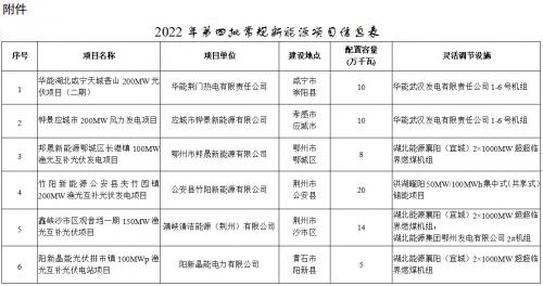 湖北2022年第四批新能源發(fā)電項目名單公布