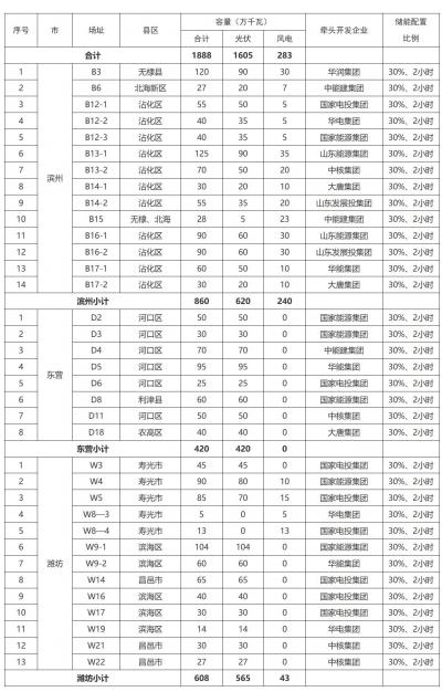 經(jīng)競爭優(yōu)選,確定35個項目、1888萬千瓦列入魯北基地“十四五”開發(fā)計劃。其中,濱州市開發(fā)項目14個、總規(guī)模860萬千瓦(光伏發(fā)電620萬千瓦、風電240萬千瓦);東營市開發(fā)項目8個、總規(guī)模420萬千瓦,均為光伏發(fā)電;濰坊市開發(fā)項目13個、總規(guī)模608萬千瓦(光伏發(fā)電565萬千瓦、風電43萬千瓦)。上述項目納入我省保障性并網(wǎng)項目名單,原則上2025年底前全部開工、2027年底前建成并網(wǎng)。