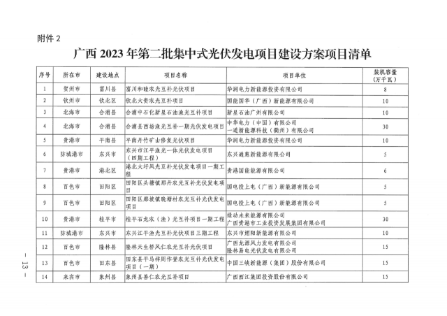 近日,廣西壯族自治區(qū)發(fā)展和改革委員會印發(fā)2023年第二批新能源項目建設方案的通知。