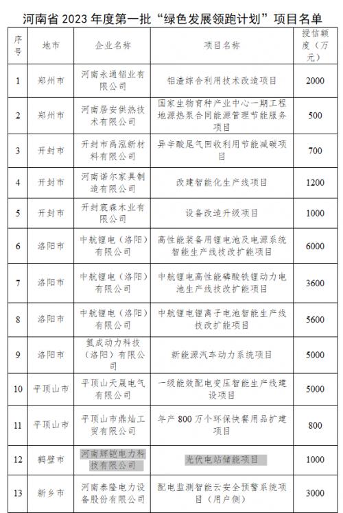 據(jù)了解,為加強產(chǎn)融合作推動工業(yè)綠色低碳高質(zhì)量發(fā)展,河南省工業(yè)和信息化廳聯(lián)合金融機構(gòu)建立了“綠色發(fā)展領跑計劃”項目聯(lián)動機制。在前期廣泛征集企業(yè)綠色發(fā)展項目融資需求、銀行審核的基礎上,征集了一批信譽良好、經(jīng)營管理規(guī)范、有融資貸款需求的工業(yè)企業(yè)“綠色發(fā)展領跑計劃”項目,并最終確定了首批“綠色發(fā)展領跑計劃”支持的22個項目。