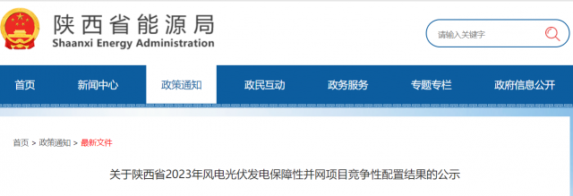 現(xiàn)將2023年陜西省風電、光伏發(fā)電保障性并網項目競爭性配置結果進行公示。公示時間為2023年8月25日至2023年8月31日,如有異議,請在公示期內以書面實名反映。