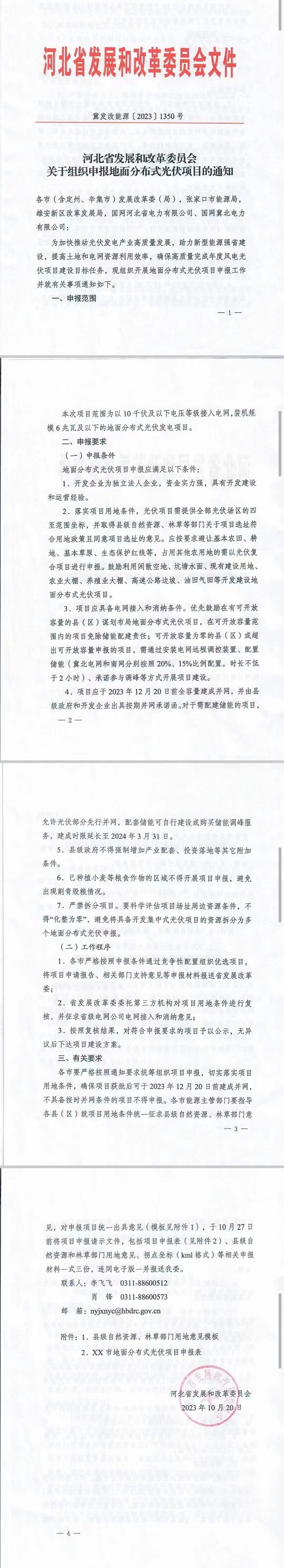 3)并網(wǎng)時間要求:確保項(xiàng)目獲批后可于2023年12月20日前建成并網(wǎng), 不具備按時并網(wǎng)條件的項(xiàng)目不得申報。由縣級政府和開發(fā)企業(yè)出具按期并網(wǎng)承諾函。