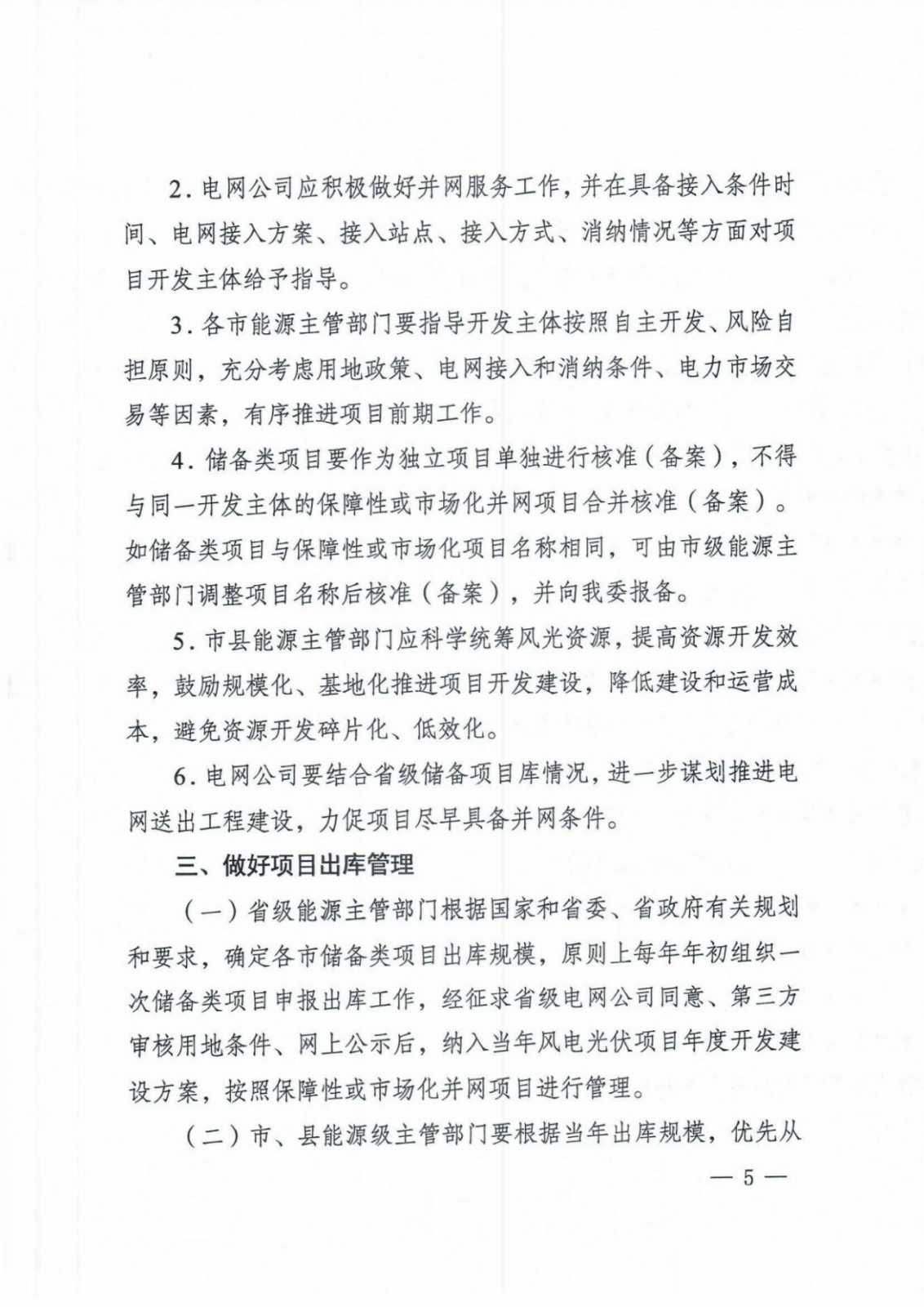 在入庫方面,由省級能源主管部門根據(jù)全省新能源發(fā)展需求,結(jié)合各地市風(fēng)光資源以及存量項(xiàng)目建設(shè)情況、電網(wǎng)規(guī)劃等每季度開展一次新項(xiàng)目入庫,在滿足第三方審核用地條件、征求電網(wǎng)公司意見后經(jīng)各市申報列入儲備庫。
