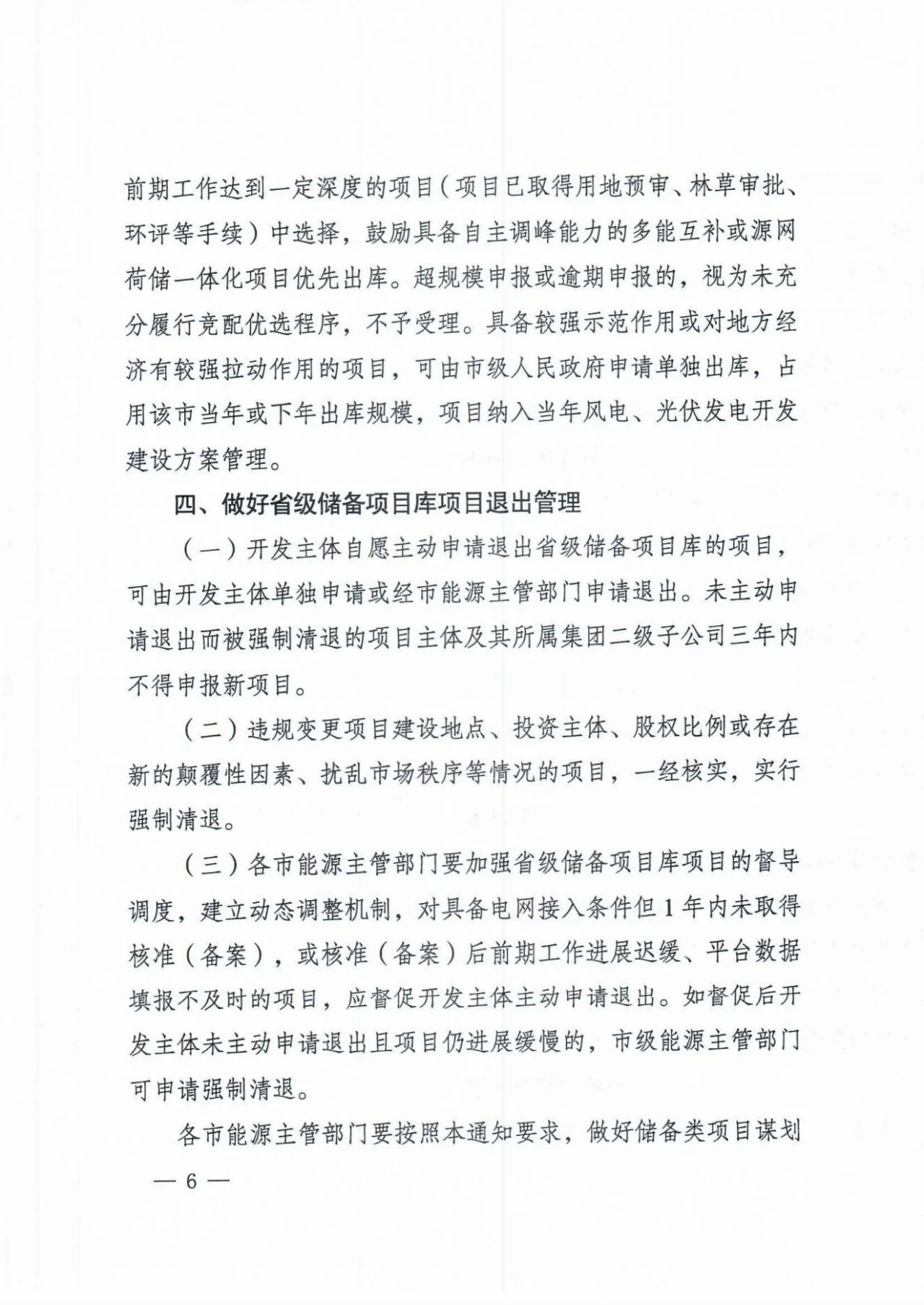 需要注意的是,違規(guī)變更項(xiàng)目建設(shè)地點(diǎn)、投資主體、股權(quán)比例或存在新的顛覆性因素、擾亂市場秩序等情況的項(xiàng)目,一經(jīng)核實(shí),實(shí)行強(qiáng)制清退。對具備電網(wǎng)接入條件但1年內(nèi)未取得核準(zhǔn)(備案),或核準(zhǔn)(備案)后前期工作進(jìn)展遲緩、平臺數(shù)據(jù)填報不及時的項(xiàng)目,應(yīng)督促開發(fā)主體主動申請退出,否則將主動清退。