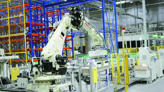 在位于西寧(國家級)經(jīng)濟(jì)技術(shù)開發(fā)區(qū)南川工業(yè)園區(qū)的天合光能股份有限公司青海大基地,機(jī)械臂有序抓取硅棒,AGV小車取代人工在車間有序穿梭,生產(chǎn)線日夜不停運(yùn)轉(zhuǎn),各生產(chǎn)線向自己創(chuàng)下的產(chǎn)量記錄再次發(fā)起挑戰(zhàn)……