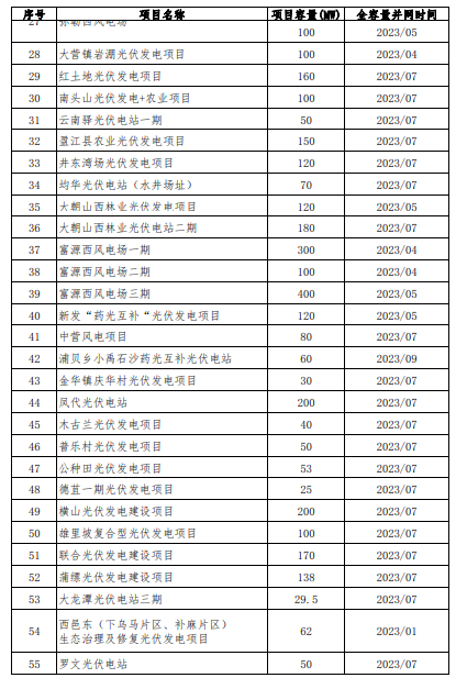 根據(jù)《云南省發(fā)展和改革委員會(huì) 云南省能源局關(guān)于云南省光伏發(fā)電上網(wǎng)電價(jià)政策有關(guān)事項(xiàng)的通知》(云發(fā)改價(jià)格〔2023〕319號(hào))以及《云南省發(fā)展和改革委員會(huì) 云南省能源局關(guān)于進(jìn)一步完善風(fēng)電上網(wǎng)電價(jià)政策有關(guān)事項(xiàng)的通知》(云發(fā)改價(jià)格〔2023〕665號(hào))文件精神,新能源全容量并網(wǎng)時(shí)間的認(rèn)定由省能源局會(huì)同云南電網(wǎng)公司負(fù)責(zé)。為加強(qiáng)社會(huì)監(jiān)督,廣泛征求意見,現(xiàn)將經(jīng)認(rèn)定后的項(xiàng)目清單予以公示,有關(guān)情況如下: