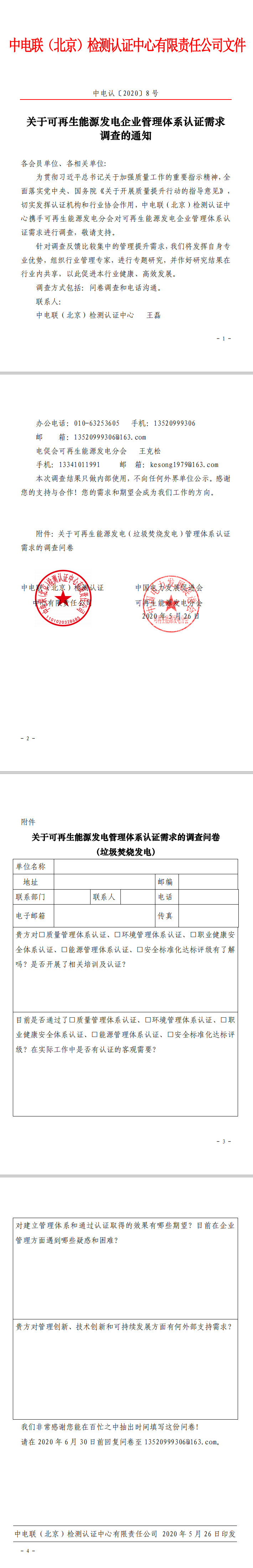 關(guān)于可再生能源發(fā)電企業(yè)管理體系認(rèn)證需求調(diào)查的通知