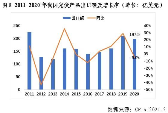 摘要:2020年,受新冠肺炎疫情的影響,全球經(jīng)濟倒退,然而我國光伏行業(yè)逆流而上,取得了令人矚目的成就,保持并延續(xù)了多項世界第一。應用市場實現(xiàn)恢復性增長,2020年我國光伏新增裝機48.2GW,連續(xù)8年位居全球首位;累計裝機量達到253GW,連續(xù)6年位居全球首位;產(chǎn)業(yè)規(guī)模持續(xù)擴大,制造端四個主要環(huán)節(jié)實現(xiàn)兩位數(shù)增長,多晶硅產(chǎn)量39.2萬噸,連續(xù)10年位居全球首位;光伏組件產(chǎn)量124.6GW,連續(xù)14年位居全球首位;出口市場穩(wěn)中有升,光伏產(chǎn)品出口額197.5億美元,同比下降5%,但組件出口量則達到78.8GW,創(chuàng)歷史新高,同比增長18.3%。