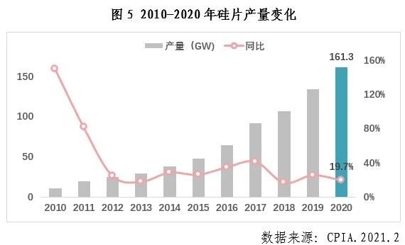 (二)產(chǎn)業(yè)規(guī)模持續(xù)擴大盡管受到年初的疫情沖擊、7-8月多晶硅料企業(yè)安全事故及新疆地區(qū)疫情導致的硅料供應緊張、以及7月開始由于光伏玻璃、EVA膠膜等供應緊張導致的原輔材料價格上漲等黑天鵝事件,我國光伏產(chǎn)業(yè)在國內(nèi)外市場的推動下,規(guī)模持續(xù)擴大。其中,多晶硅產(chǎn)量39.2萬噸,同比增長14.6%;硅片產(chǎn)量161.3GW,同比增長19.7%;電池片產(chǎn)量134.8GW,同比增長22.2%;組件產(chǎn)量124.6GW,同比增長26.4%。