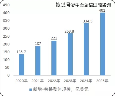 (2)全球光伏逆變器行業(yè)市場分析:2010年以來,全球光伏逆變器的出貨量基本處于高速增長狀態(tài)。據(jù)中金企信國際咨詢公布的《2021-2027年中國光伏逆變器市場競爭戰(zhàn)略研究及投資前景預(yù)測報告》統(tǒng)計數(shù)據(jù)顯示:2020年全球光伏逆變器的新增及替換整體市場規(guī)模將達(dá)到約136GW,且將在未來數(shù)年保持在平均20%以上的增長速度,至2025年全球光伏逆變器新增及替換整體市場將有望達(dá)到400GW的市場。