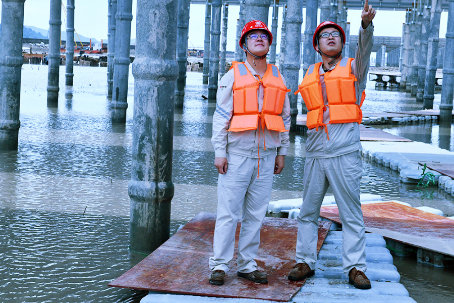 項目管理中的大唐人不懼挑戰(zhàn),主動作為,多次與相關(guān)專家現(xiàn)場論證、深入探討,最終在項目部內(nèi)達(dá)成一致:實施水陸雙棲作業(yè)。