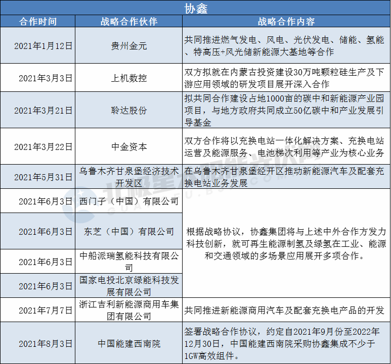 2021年1-7月部分光伏企業(yè)戰(zhàn)略合作簽約如下: