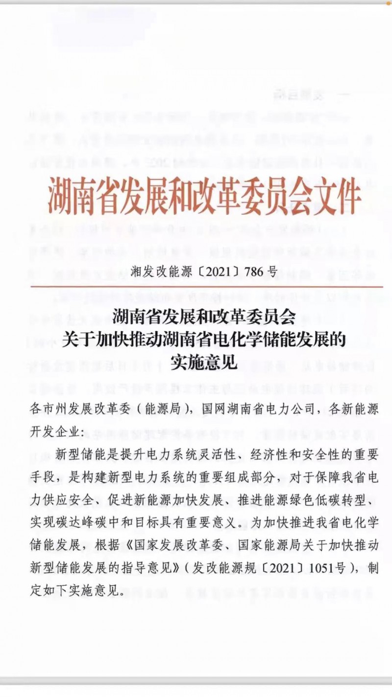 10月13日,湖南省發(fā)改委下發(fā)《關(guān)于加快推動(dòng)湖南省電化學(xué)儲(chǔ)能發(fā)展的實(shí)施意見》,文件明確以發(fā)展電網(wǎng)側(cè)獨(dú)立儲(chǔ)能為重點(diǎn),集中規(guī)劃建設(shè)一批電網(wǎng)側(cè)儲(chǔ)能電站,力爭到2023年建成電化學(xué)儲(chǔ)能電站150萬千瓦/300萬千瓦時(shí)以上。