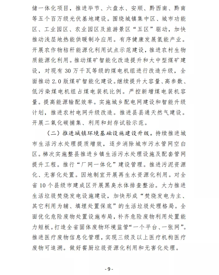 大力發(fā)展光伏、風(fēng)電、地?zé)崮艿刃履茉?,提升可再生能源利用比例。依托大型水電站和現(xiàn)有火電廠富余通道,建設(shè)一批風(fēng)光水火儲(chǔ)一體化項(xiàng)目,實(shí)現(xiàn)多能互補(bǔ)。著力建設(shè)烏江、南盤(pán)江、北盤(pán)江、清水江流域“四個(gè)一體化”水風(fēng)光可再生能源綜合基地及風(fēng)光水火儲(chǔ)一體化項(xiàng)目,推進(jìn)畢節(jié)、六盤(pán)水、安順、黔西南、黔南等五個(gè)百萬(wàn)級(jí)光伏基地建設(shè)。