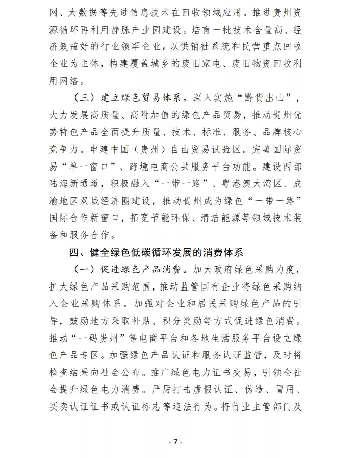 貴州省加快建立健全綠色低碳循環(huán)發(fā)展經(jīng)濟(jì)體系實(shí)施方案