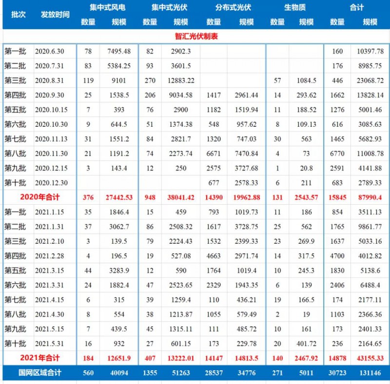 除了進(jìn)入財政部前七批的補(bǔ)貼目錄之外,2020年6月份以來,國家電網(wǎng)每半個月就會公布一批新確權(quán)的項(xiàng)目。
