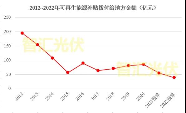 在補(bǔ)貼資金總量有限的情況下,剩給普通項(xiàng)目的資金就會變少。因此,發(fā)放給地方的補(bǔ)貼資金也會變少。2012年以來,財政部發(fā)給地方電網(wǎng)的補(bǔ)貼資金金額如下表所示。
