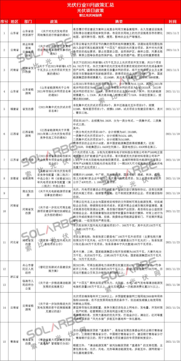那么,11月份的光伏行業(yè)有哪些政策值得重點關(guān)注呢?下面來看索比光伏網(wǎng)的梳理。