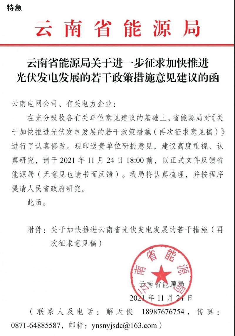 11月24日,云南省能源局下發(fā)《關(guān)于進一步加快推進光伏發(fā)電發(fā)展的若干政策措施意見建議的函》,就云南光伏光伏給出指導(dǎo)意見。
