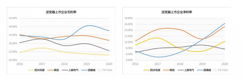 此外,從近幾年國(guó)內(nèi)主要逆變器廠商的毛利率來看,主營(yíng)小功率(組串式、微型)逆變器的錦浪、固德威,其毛利率相對(duì)要高于以大功率(集中式)逆變器為主的陽(yáng)光電源、上能電氣。因此,若未來小功率逆變器出貨比例持續(xù)提升,或有助于帶動(dòng)深耕戶用市場(chǎng)的逆變器企業(yè)綜合盈利能力進(jìn)一步提升。