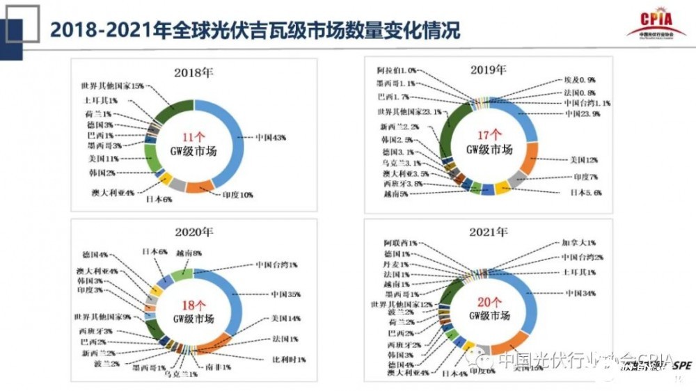 王勃華還指出,根據(jù)統(tǒng)計,2018年-2021年全球光伏吉瓦級市場數(shù)量達20個,根據(jù)預測,2022年將達到26個。王勃華表示,光伏吉瓦級市場的增加,增強了我們在國際貿(mào)易中抗沖擊能力和抗打擊能力。