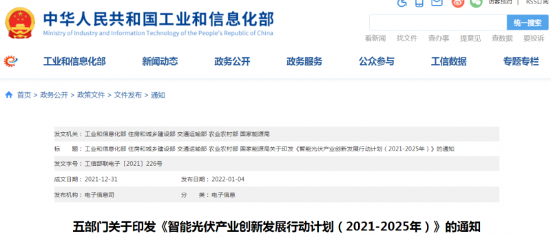 2022年1月4日,工信部等五部門聯(lián)合印發(fā)《智能光伏產業(yè)創(chuàng)新發(fā)展行動計劃(2021-2025年)》,其中的主要任務就包括助力“智能光伏交通”在內的各領域碳達峰碳中和。加快“光伏+交通”等融合發(fā)展項目推廣應用,推動交通領域光伏電站及充電樁示范建設。堅持充分論證、因地制宜、試點先行的原則,鼓勵光伏發(fā)電在公路服務區(qū)(停車場)、加油站、公路邊坡、公路隧道、公交貨運場站、港口碼頭、航標等導助航設施、碼頭躉船、海島工作站點等領域的應用。