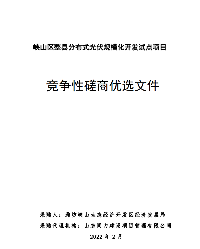峽山區(qū)整縣分布式光伏規(guī)?;_發(fā)試點項目競爭性磋商二次公告