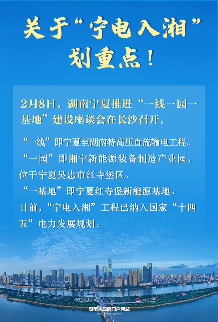2月8日,湖南省政府與寧夏回族自治區(qū)政府在長沙舉行座談會,共商加快推進“一線一園一基地”建設。“一線”為寧夏至湖南特高壓直流輸電工程,“一園”為湘寧新能源裝備制造產(chǎn)業(yè)園,“一基地”為寧夏紅堡寺新能源基地。