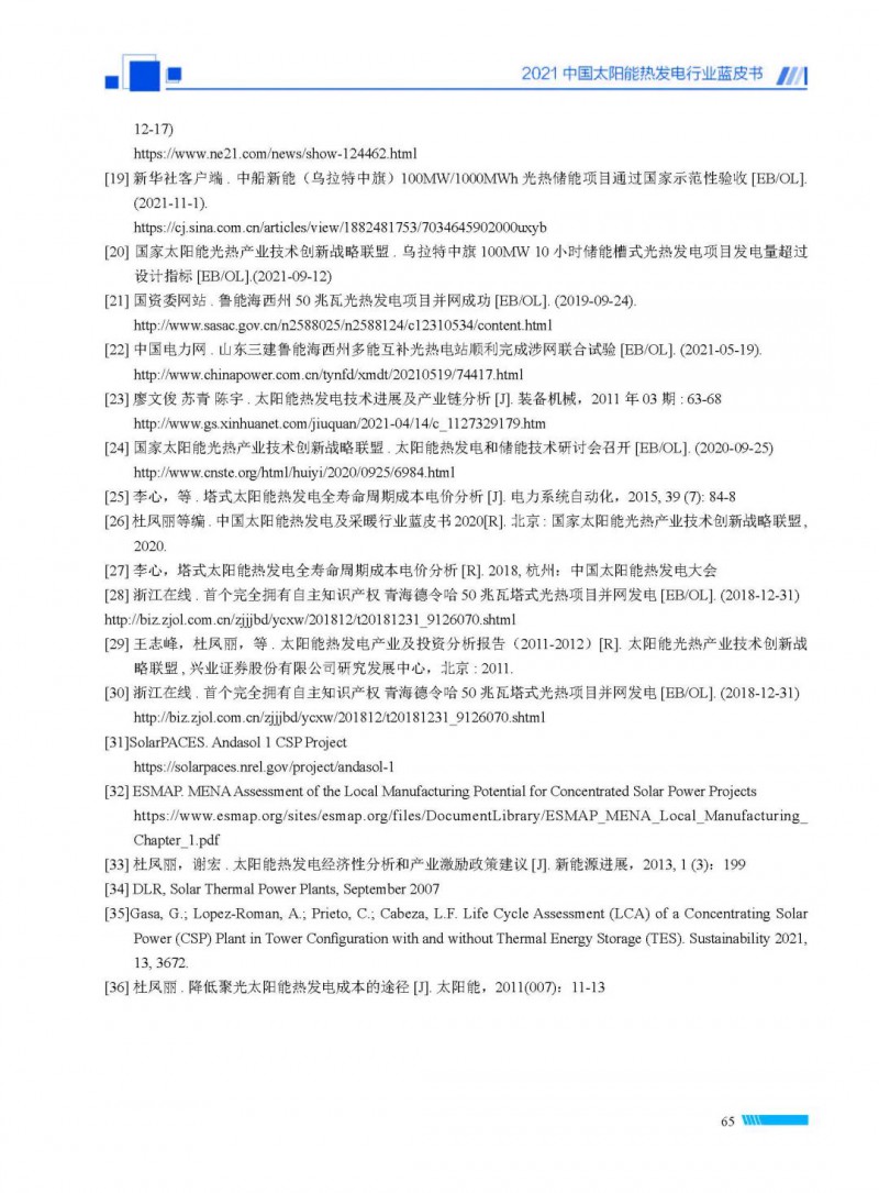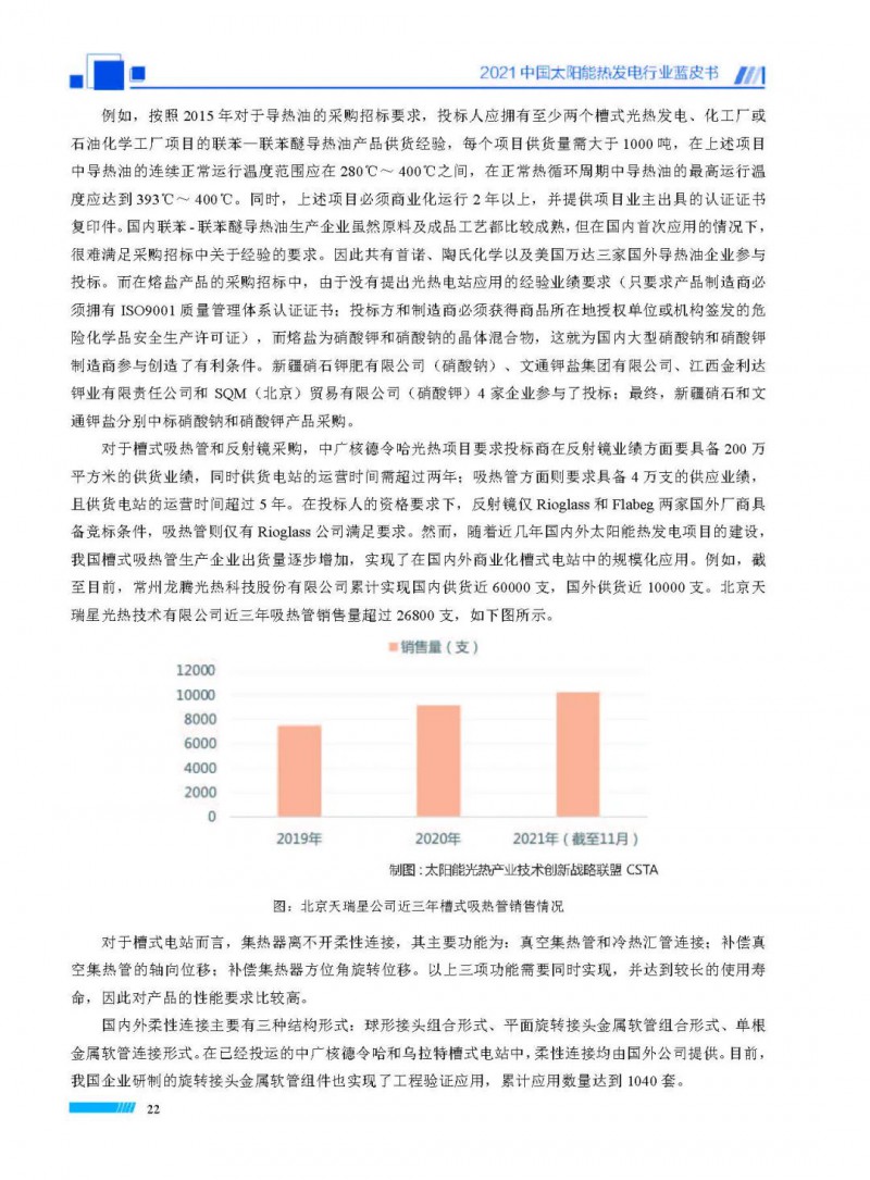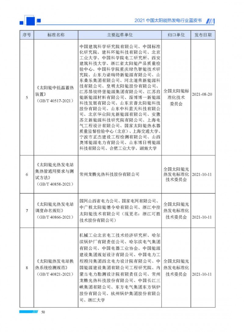 近日,由國(guó)家太陽(yáng)能光熱產(chǎn)業(yè)技術(shù)創(chuàng)新戰(zhàn)略聯(lián)盟、中國(guó)可再生能源學(xué)會(huì)太陽(yáng)能熱發(fā)電專業(yè)委員會(huì)、中關(guān)村新源太陽(yáng)能熱利用技術(shù)服務(wù)中心聯(lián)合編制的《2021中國(guó)太陽(yáng)能熱發(fā)電行業(yè)藍(lán)皮書(shū)》發(fā)布。