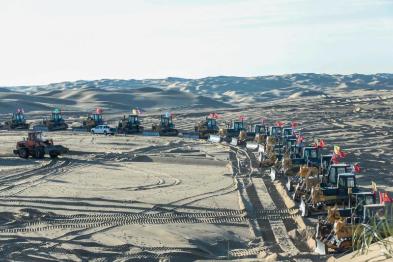 ▲2021年10月16日,內(nèi)蒙古蒙西基地庫布其200萬千瓦光伏治沙項(xiàng)目開工現(xiàn)場(chǎng)。