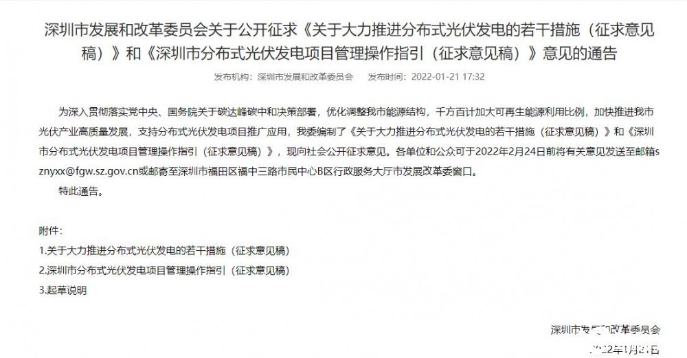此次公開征求意見的《若干措施》《操作指引》由深圳市發(fā)改委負責編制,主要包括推進分布式光伏規(guī)模應(yīng)用、完善光伏項目管理工作、培育光伏產(chǎn)業(yè)和骨干企業(yè)、創(chuàng)新光伏項目投融資服務(wù)、加強光伏并網(wǎng)管理和服務(wù)、實施新建光伏項目財政補貼、強化安全責任監(jiān)管等內(nèi)容。