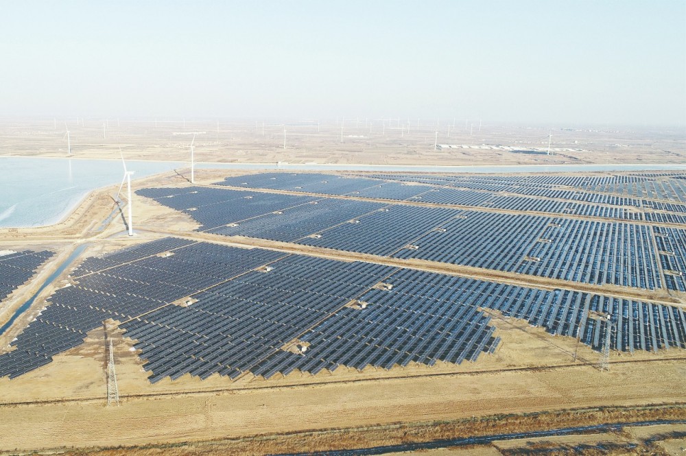 ▲位于山東濱州沾化區(qū)濱海鎮(zhèn)鹽堿灘上的風(fēng)電、光伏項目。CFP/圖