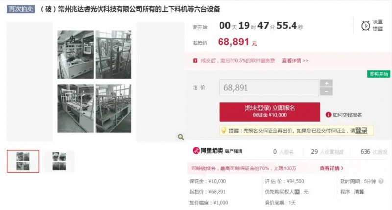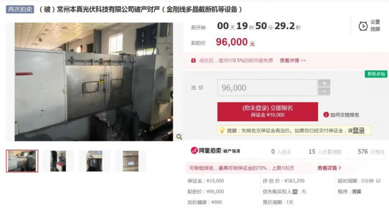近日,一批土地使用權(quán)、光伏電站機器設(shè)備及金剛線多晶截斷機、上下料機、太陽能晶片計數(shù)儀等光伏設(shè)備即將在阿里司法拍賣平臺進行拍賣。