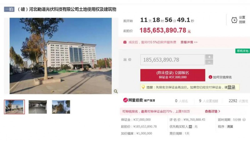 起拍價 2.24億!一批光伏設(shè)備、土地使用權(quán)即將在阿里司法拍賣平臺進行拍賣