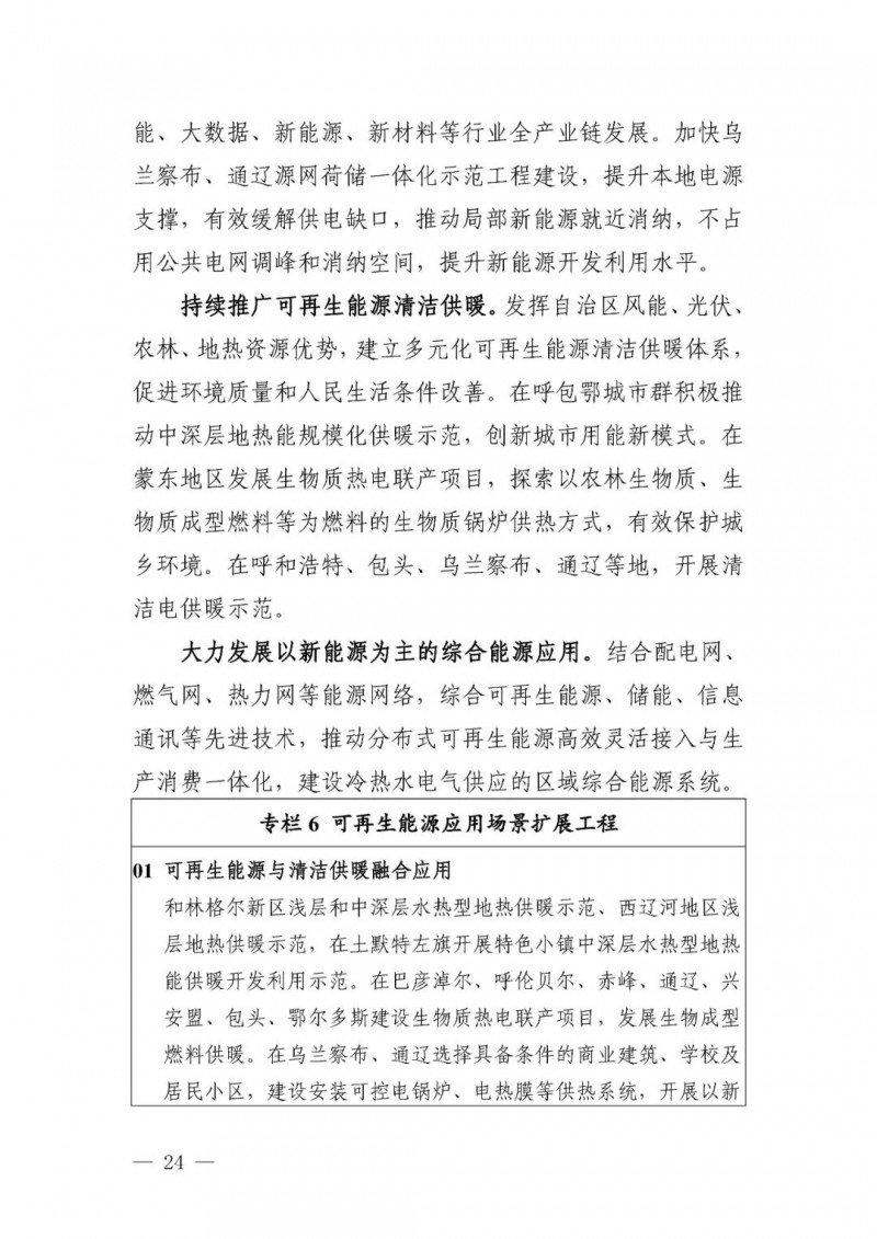 可再生能源供熱目標(biāo)。自治區(qū)地?zé)崮?、生物質(zhì)能、 太陽能供暖和新能源電力供暖利用規(guī)模顯著提升。全區(qū)可再生能源供暖面積達(dá)到 3600 萬平方米,“十四五”期間新增2500 萬平方米。