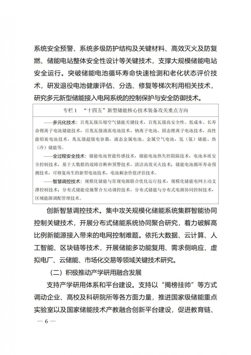 《實施方案》分為八大部分,包括總體要求、六項重點任務和保障措施。其中,六項重點任務分別從技術(shù)創(chuàng)新、試點示范、規(guī)模發(fā)展、體制機制、政策保障、國際合作等重點領(lǐng)域?qū)?ldquo;十四五”新型儲能發(fā)展的重點任務進行部署。