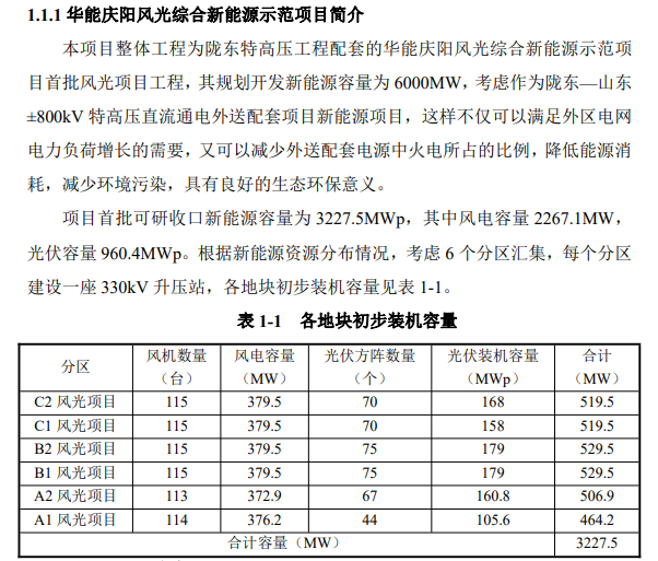 隴東特高壓工程配套新能源華能慶陽(yáng)風(fēng)光綜合新能源示范項(xiàng)目: