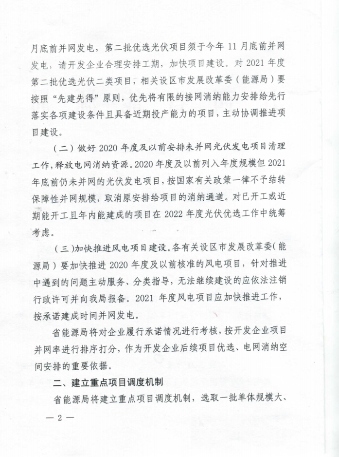 2020年度及以前列入年度規(guī)模但2021年底前仍未并網(wǎng)的光伏發(fā)電項(xiàng)目,按國(guó)家有關(guān)政策一律不予結(jié)轉(zhuǎn)保障性并網(wǎng)規(guī)模,取消原安排給項(xiàng)目的消納通道。