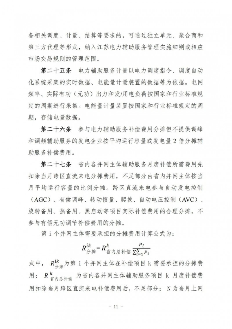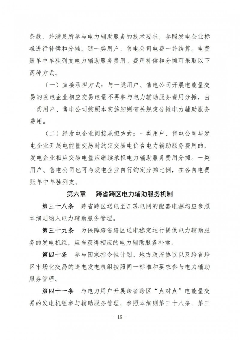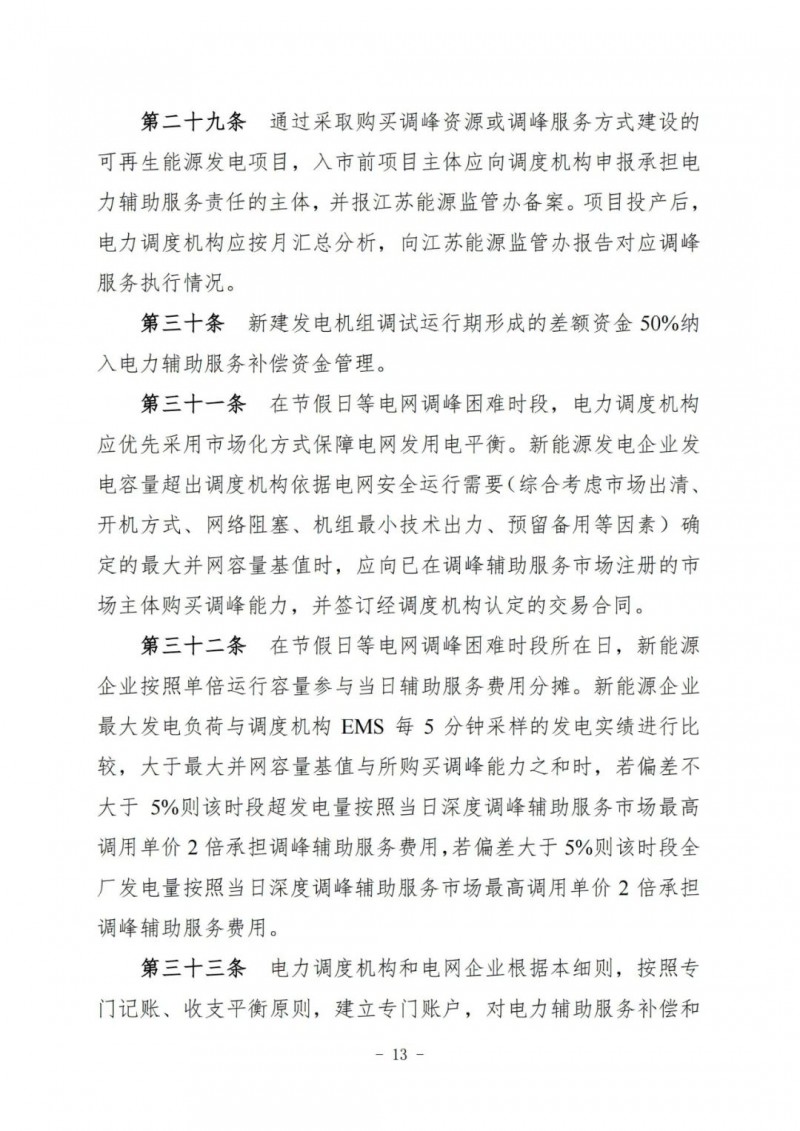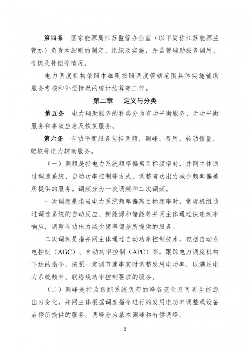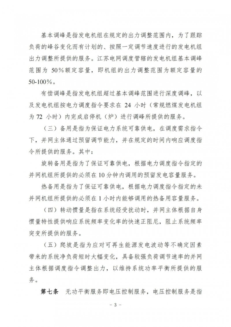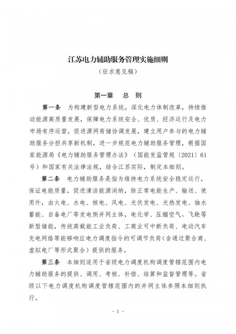 江蘇電力輔助服務(wù)管理實(shí)施細(xì)則(征求意見稿)