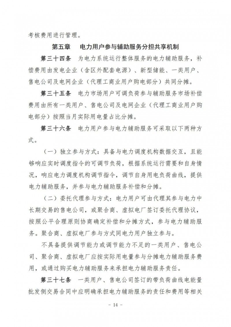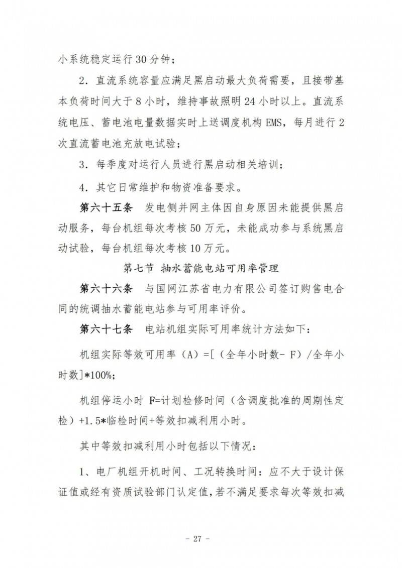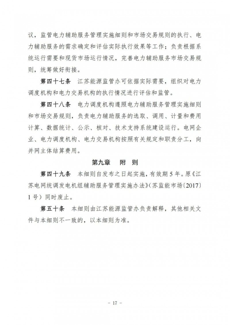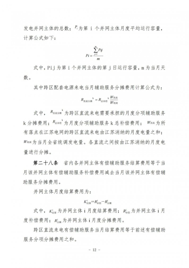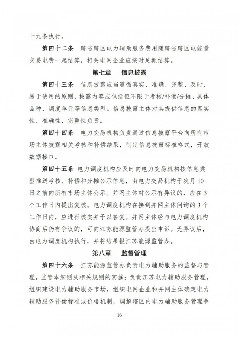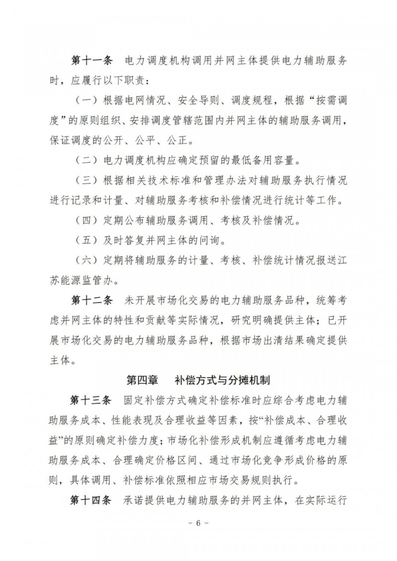 江蘇電力輔助服務(wù)管理實(shí)施細(xì)則(征求意見稿)