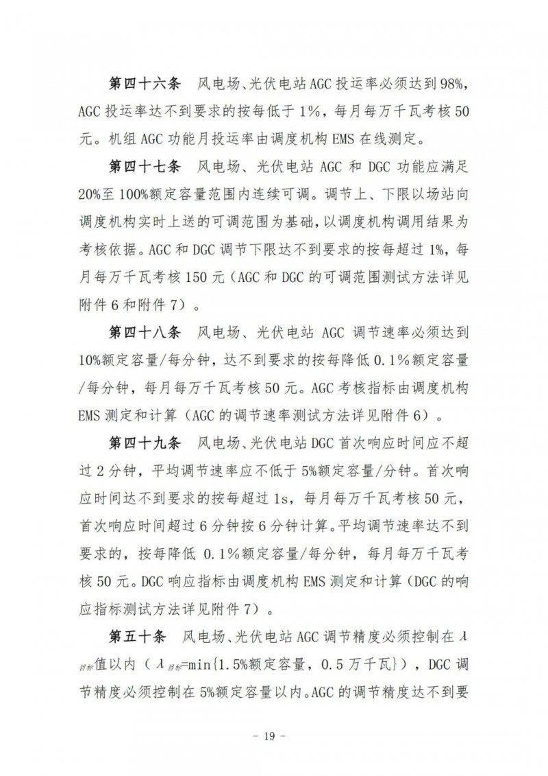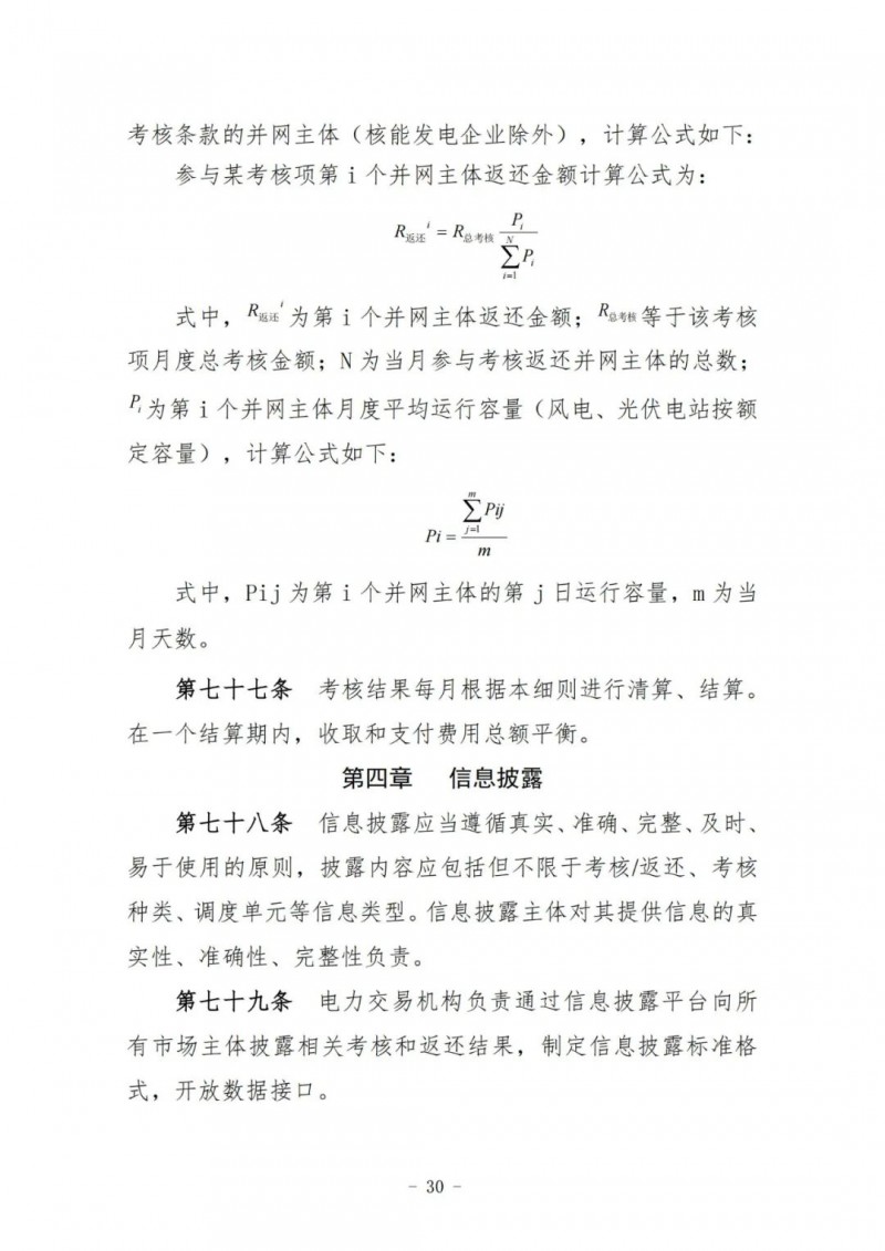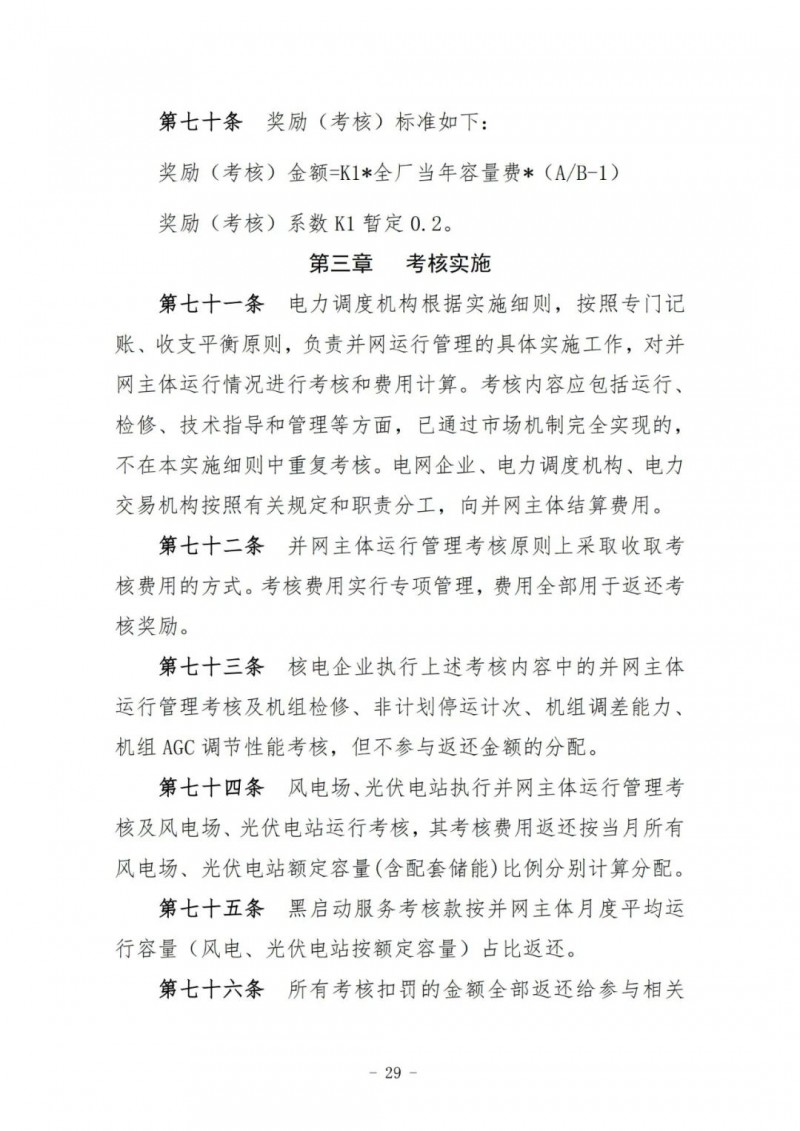 風(fēng)電場(chǎng)、光伏電站執(zhí)行并網(wǎng)主體運(yùn)行管理考核及風(fēng)電場(chǎng)、光伏電站運(yùn)行考核,其考核費(fèi)用返還按當(dāng)月所有風(fēng)電場(chǎng)、光伏電站額定容量(含配套儲(chǔ)能)比例分別計(jì)算分配。