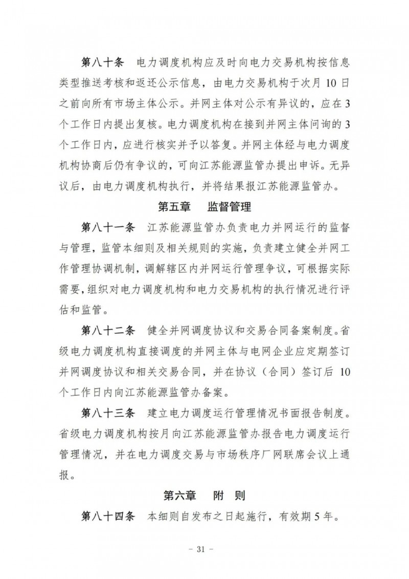 江蘇能源監(jiān)管辦關(guān)于《江蘇電力并網(wǎng)運(yùn)行管理實(shí)施細(xì)則(征求意見稿)》與《江蘇電力輔助服務(wù)管理實(shí)施細(xì)則(征求意見稿)》公開征求意見的公告