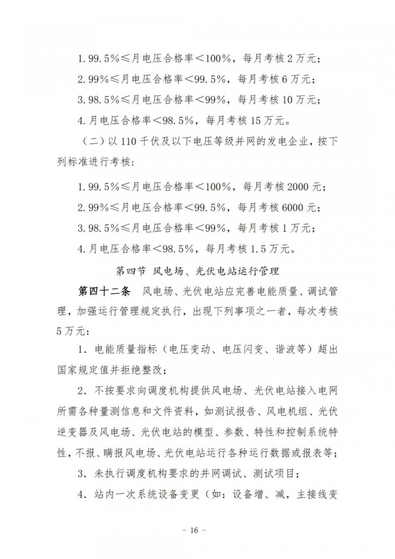 4月6日,國(guó)家能源局江蘇監(jiān)管辦公室就《江蘇電力并網(wǎng)運(yùn)行管理實(shí)施細(xì)則(征求意見稿)》與《江蘇電力輔助服務(wù)管理實(shí)施細(xì)則(征求意見稿)》公開征求意見。風(fēng)電場(chǎng)、光伏電站應(yīng)完善電能質(zhì)量、調(diào)試管理,加強(qiáng)運(yùn)行管理規(guī)定執(zhí)行,出現(xiàn)下列事項(xiàng)之一者,每次考核5萬(wàn)元: