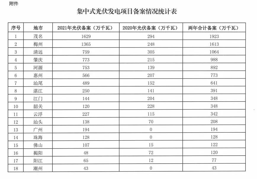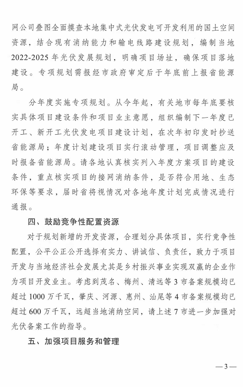 4.鼓勵(lì)競(jìng)爭性配置資源:考慮到茂名、梅州、清遠(yuǎn)等3市備案規(guī)模均已超過1000萬千瓦,肇慶、河源、惠州、汕尾等4市備案規(guī)模均已超過600萬千瓦,遠(yuǎn)超當(dāng)?shù)叵{空間,請(qǐng)上述7市進(jìn)一步加強(qiáng)對(duì)光伏備案工作的指導(dǎo)。