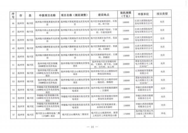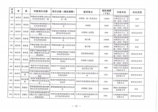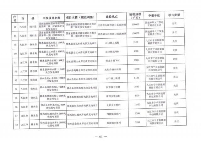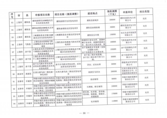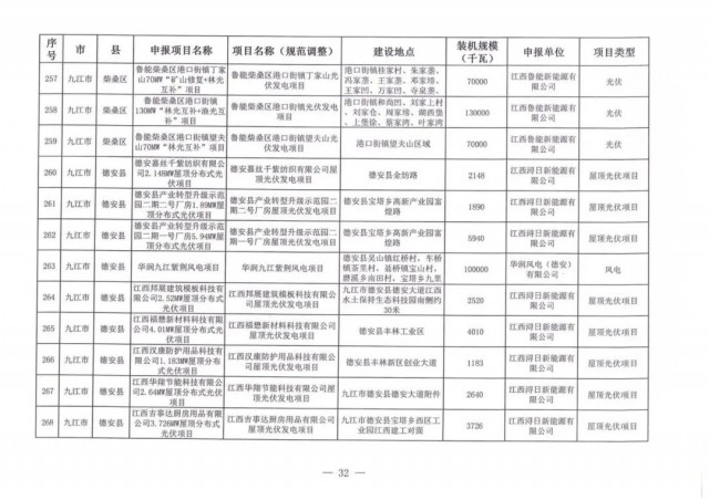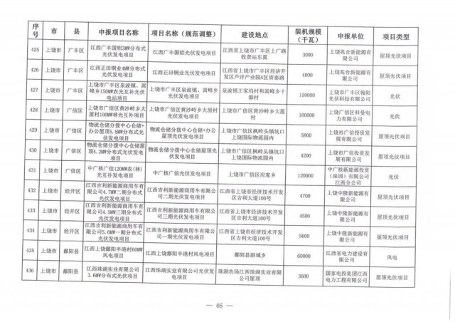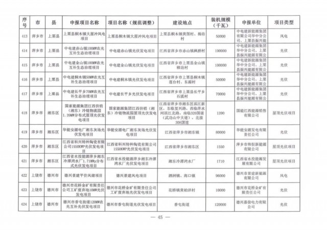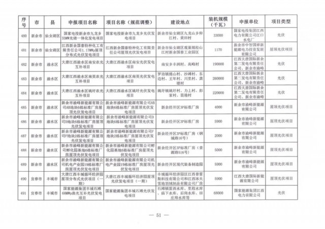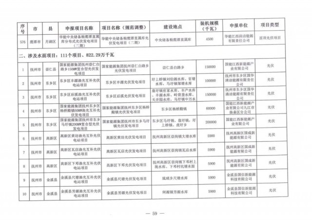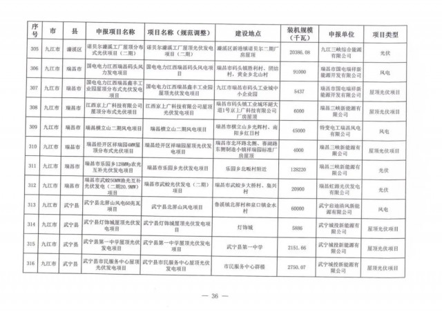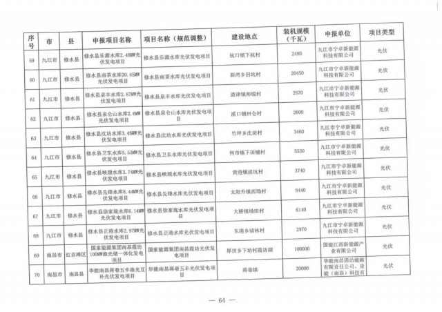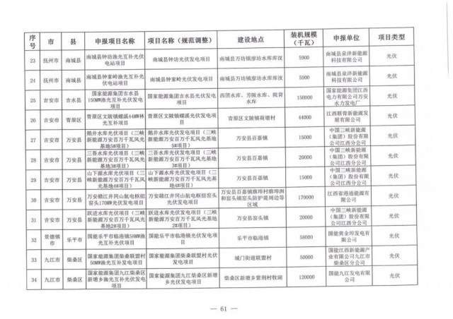 本次江西調(diào)整的納規(guī)風(fēng)光項(xiàng)目總規(guī)模為41.816GW,光伏規(guī)模33.06GW,風(fēng)電規(guī)模為8.754GW,總計(jì)687個(gè)項(xiàng)目。其中,光伏又分為集中式、分布式和水面光伏,規(guī)模分別為23.885GW、0.955GW、8.22GW。