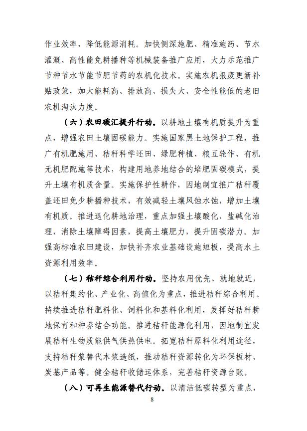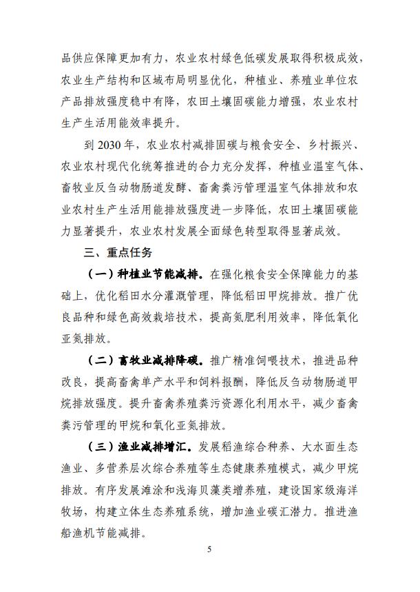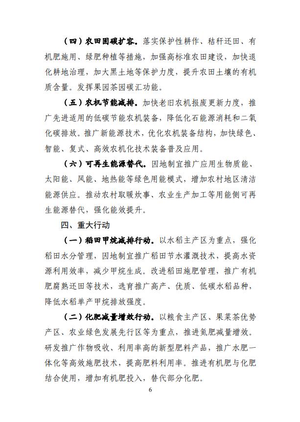 6月30日,農(nóng)業(yè)農(nóng)村部國(guó)家發(fā)展改革委發(fā)布了《農(nóng)業(yè)農(nóng)村減排固碳實(shí)施方案》,為貫徹落實(shí)碳達(dá)峰碳中和重大決策部署,推進(jìn)農(nóng)業(yè)農(nóng)村綠色低碳發(fā)展,農(nóng)業(yè)農(nóng)村部、國(guó)家發(fā)改委制定了《農(nóng)業(yè)農(nóng)村減排固碳實(shí)施方案》,方案指出6大任務(wù),10大行動(dòng)。