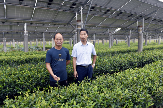 該發(fā)電站采用光伏板間隙種植茶樹方式,不僅提高了土地利用率,還呈現(xiàn)了茶樹與發(fā)電設(shè)備共存的現(xiàn)代化景觀。茶園安裝光伏板以后,每年每畝產(chǎn)值可以增加2倍以上。